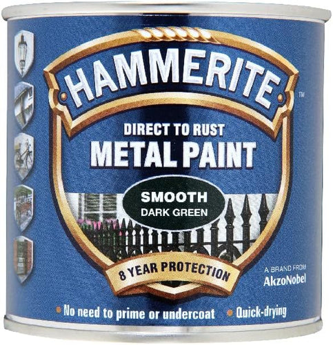 Hammerite Direct to Rust Metal Paint - Smooth Dark Green Finish 250ML