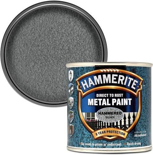 Hammerite Direct to Rust Metal Paint - Hammered Silver Finish 250ML