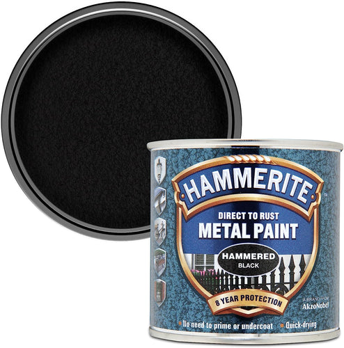 Hammerite Direct to Rust Metal Paint - Hammered Black Finish 250ML
