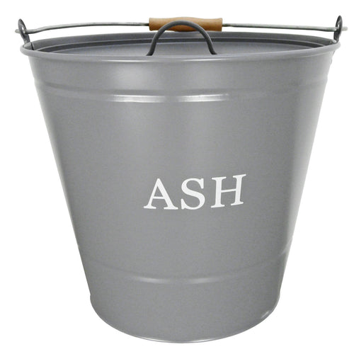 Manor Fireside Metal Ash Bucket With Lid - Grey 32cm