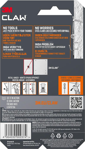 3M CLAW Drywall Picture Hanger (proven to hold 20kg) 2 pack