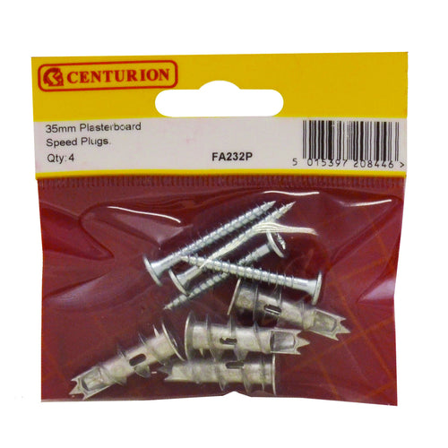 Centurion Metal Plasterboard Speed Plugs, 35mm, Zinc Plated 4 pack