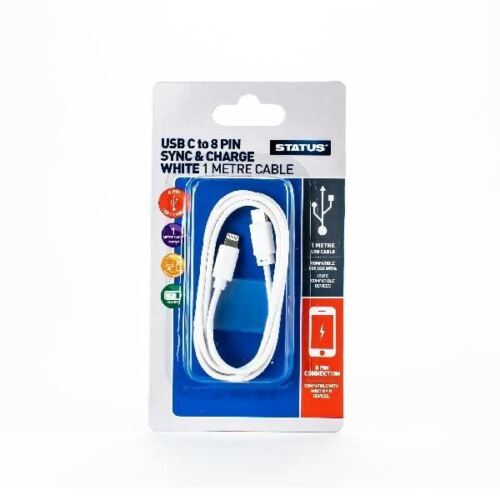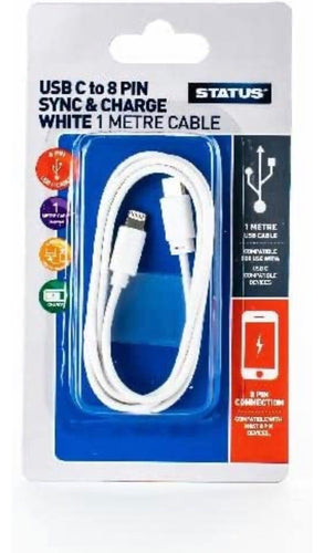Status USB C to 8 Pin Sync & Charge White 1 Metre Cable