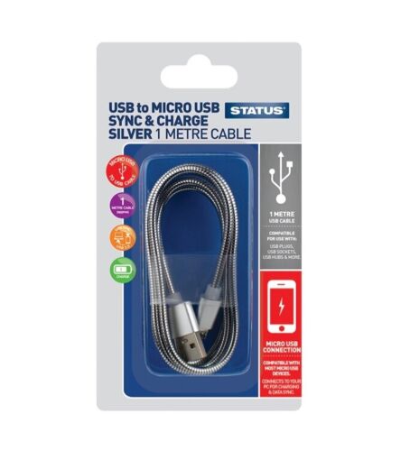 Status USB to Micro USB Sync & Charge Silver 1 Metre Cable