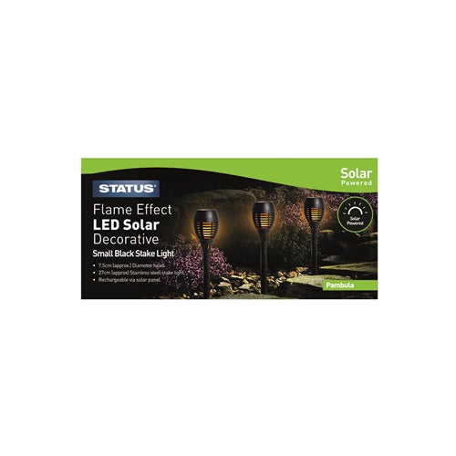 STATUS Pambula Flame Effect LED Solar Decorative Small Black Stake Lights
