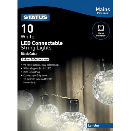STATUS Laholm 10 White LED Connectable String Lights Black Cable