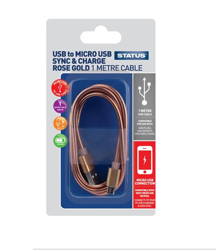 Status USB to Micro USB Sync & Charge Rose Gold 1 Metre Cable