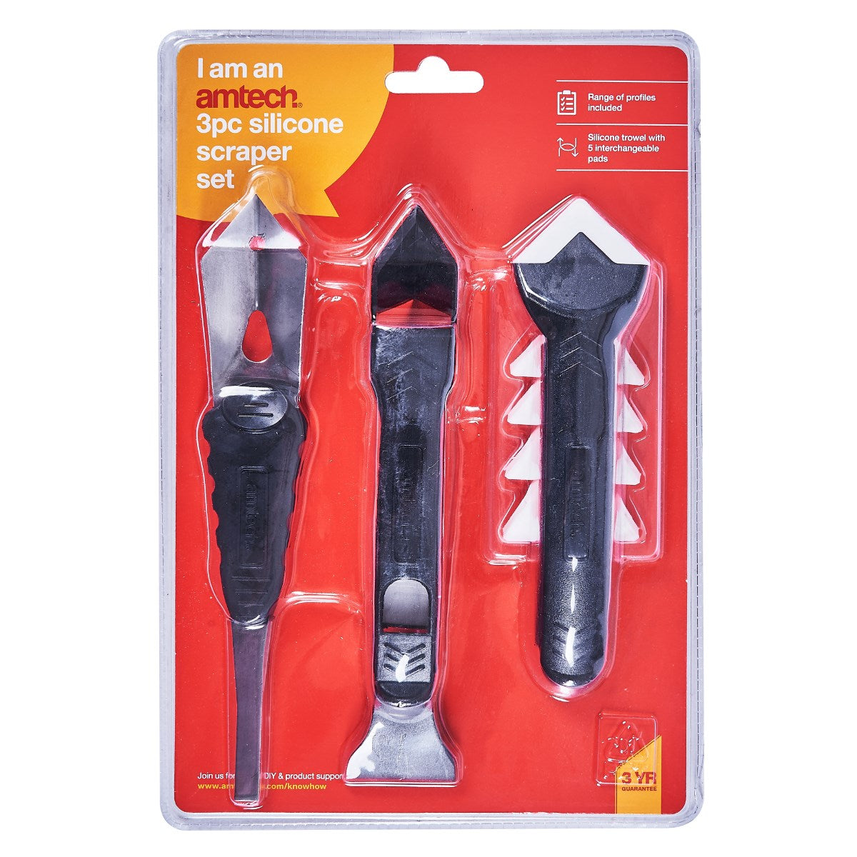 • Set includes metal scraper, plastic scraper and silicone trowel (with 5 interchangeable pads)